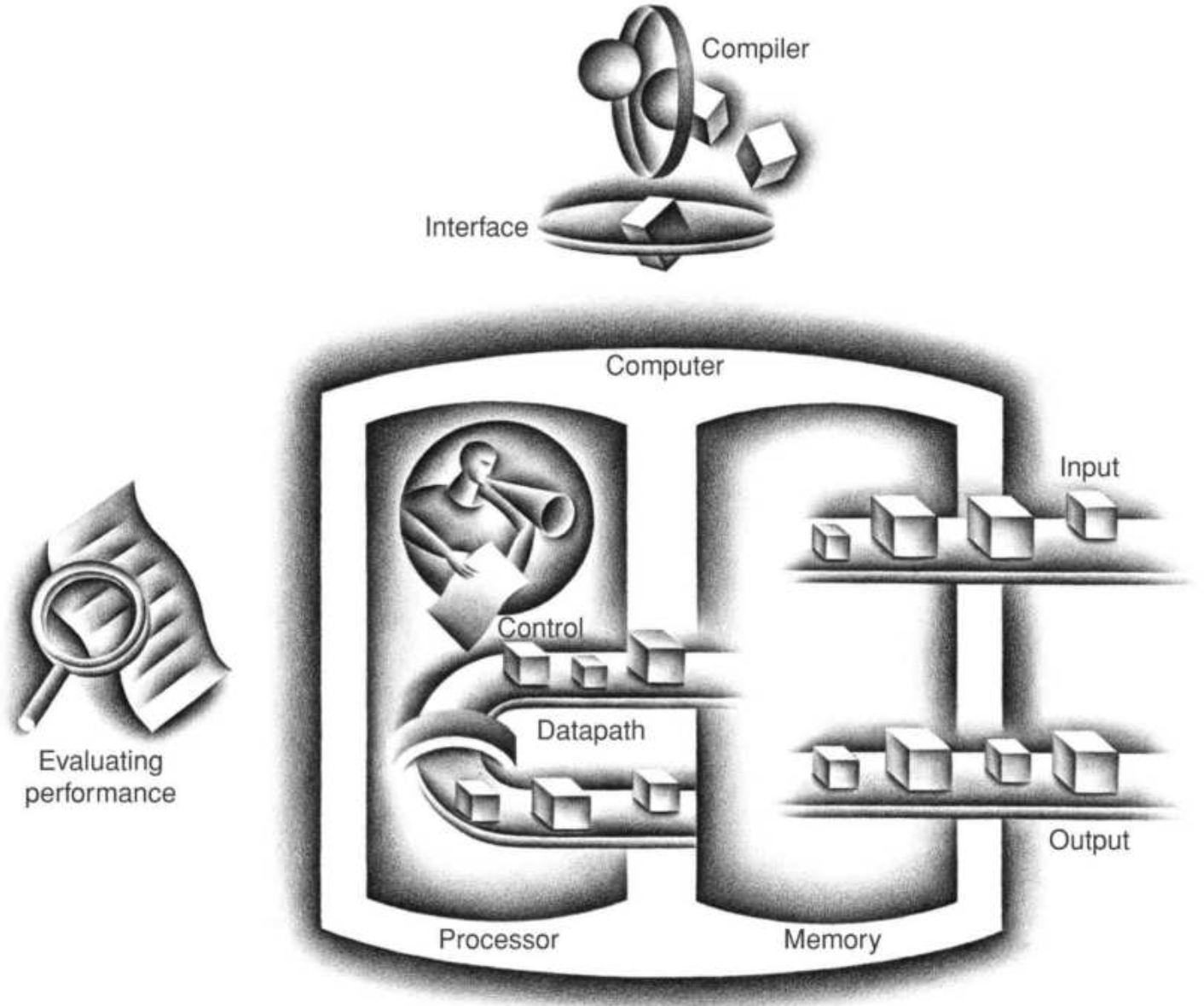 주요 구성 요소들은 하드웨어 기술과 무관하게, 과거부터 현재까지의 모든 컴퓨터를 이 다섯 가지 요소로 분류할 수 있다.
